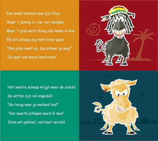 2 spreads uit Het Zwarte Schaap (couplet en refrein)